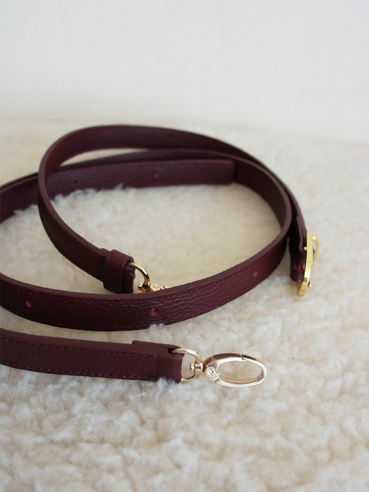 Colores: Vino y champagne. Herrajes metálicos dorados.