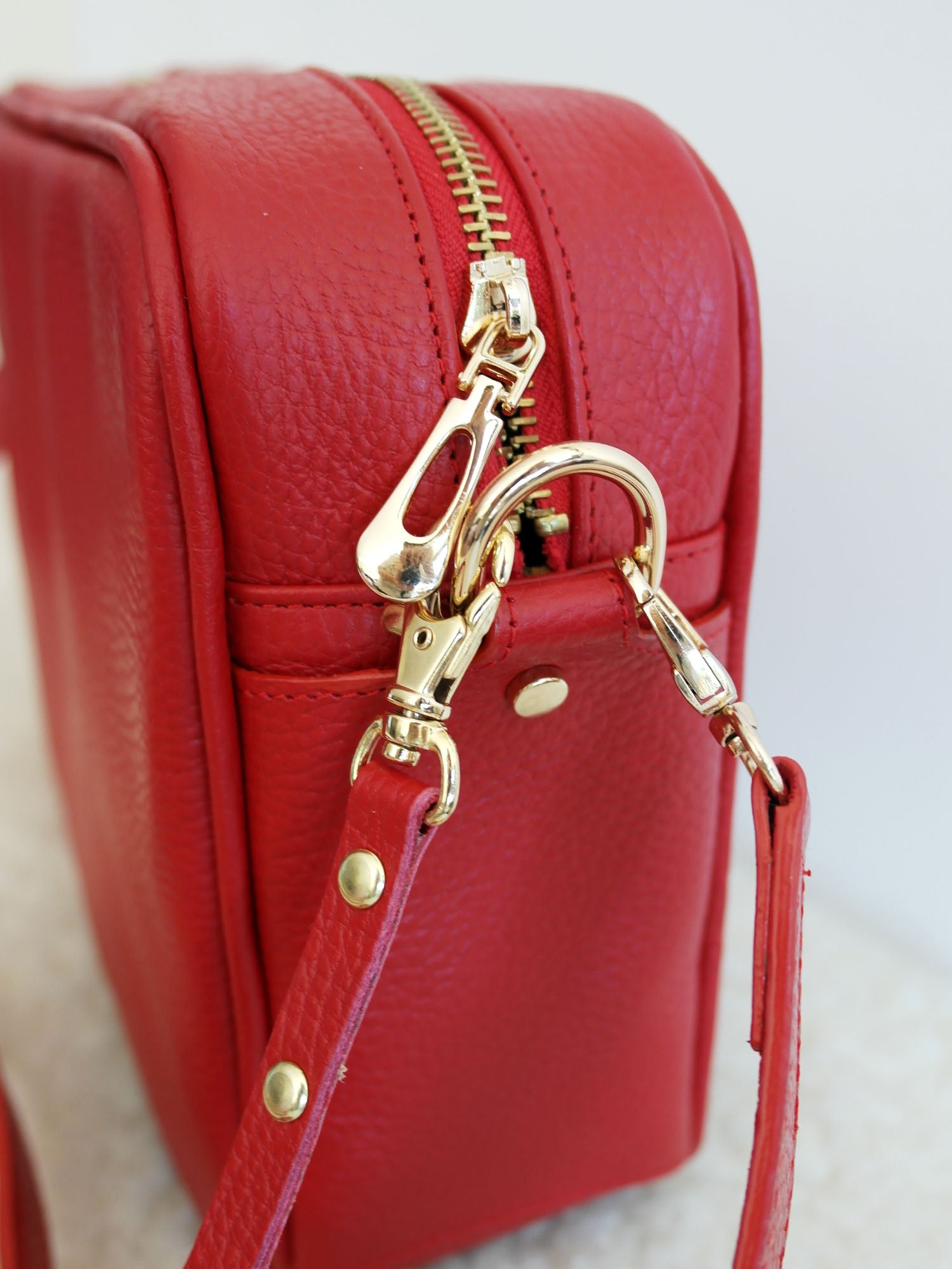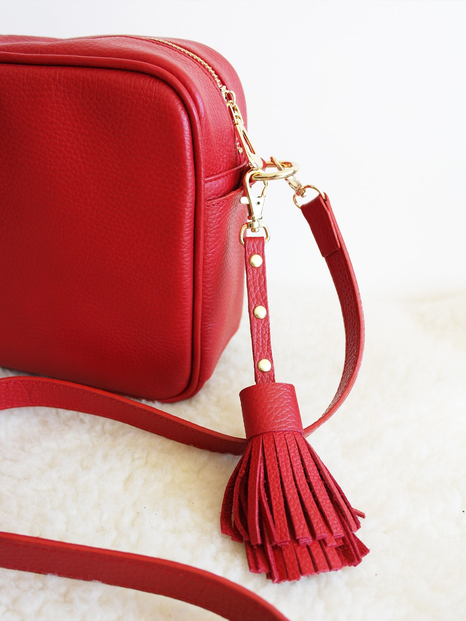 Cuenta con asa desprendible color rojo, la cual podrás alargar a la medida que necesites. También incluye una divertida borla del color de la bolsa.