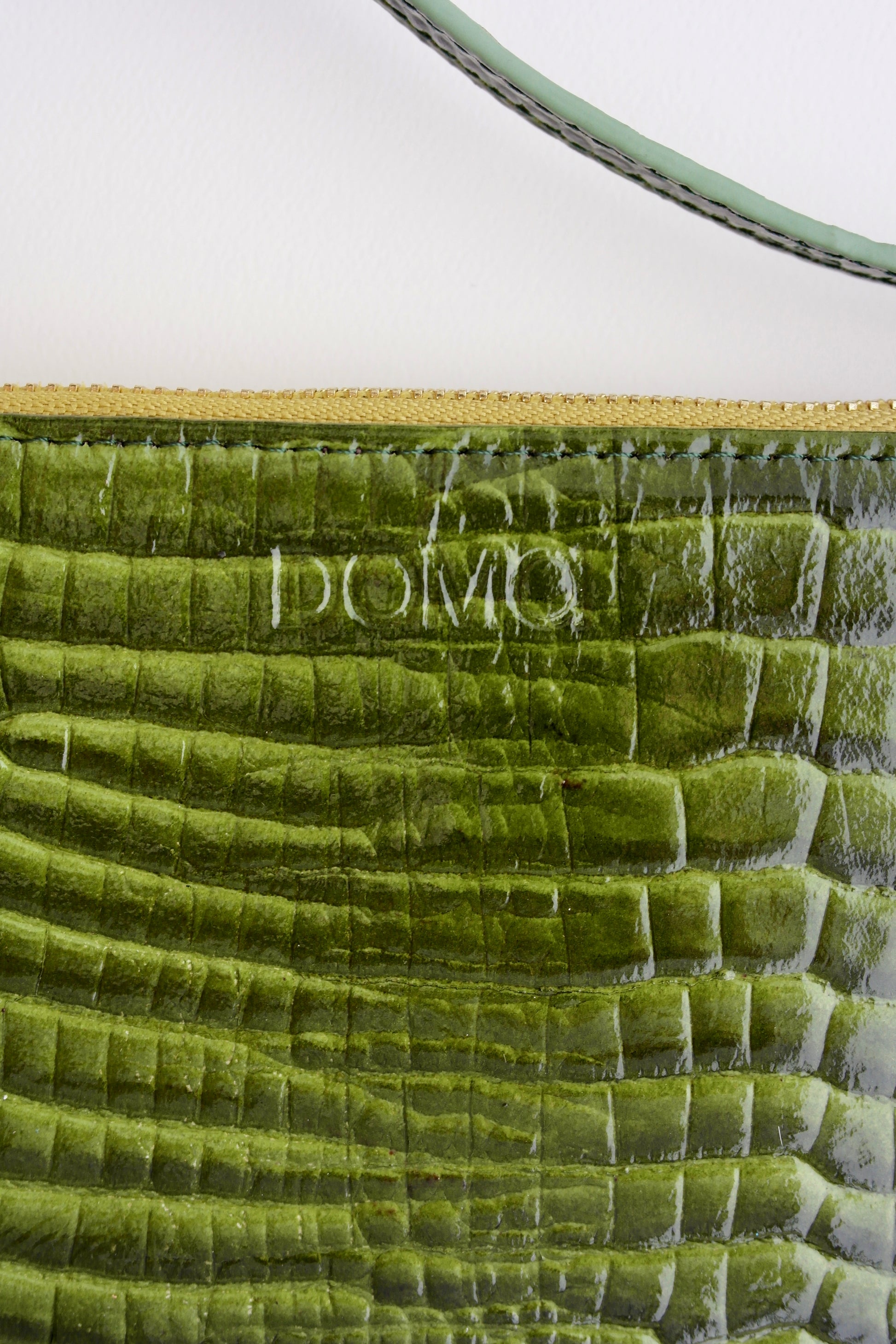 Materiales: Piel bovina con impresión tipo cocodrilo y herrajes metálicos dorados.