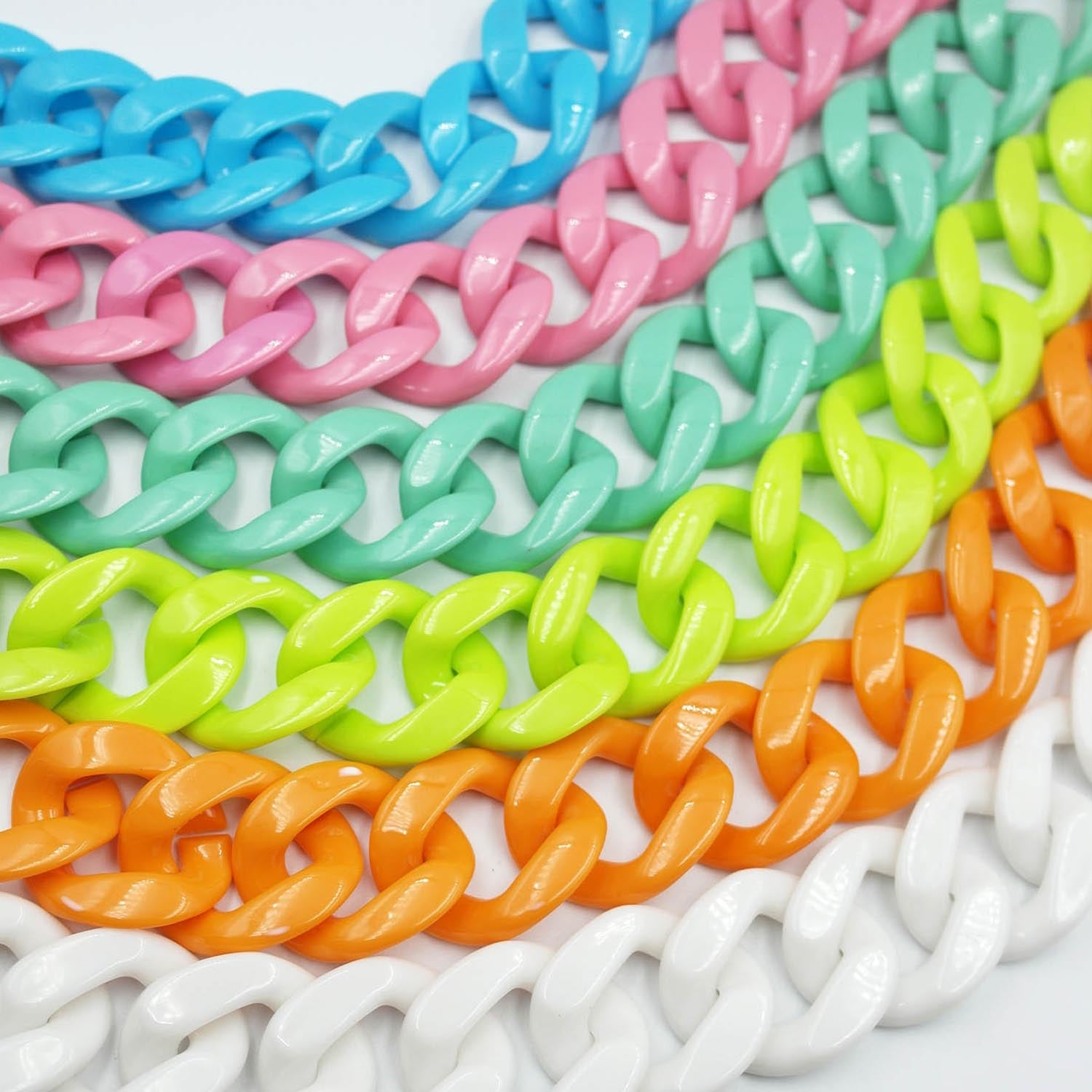 Todas las bolsas incluyen asa larga de cadena metálica y cadena chunky a tu elección