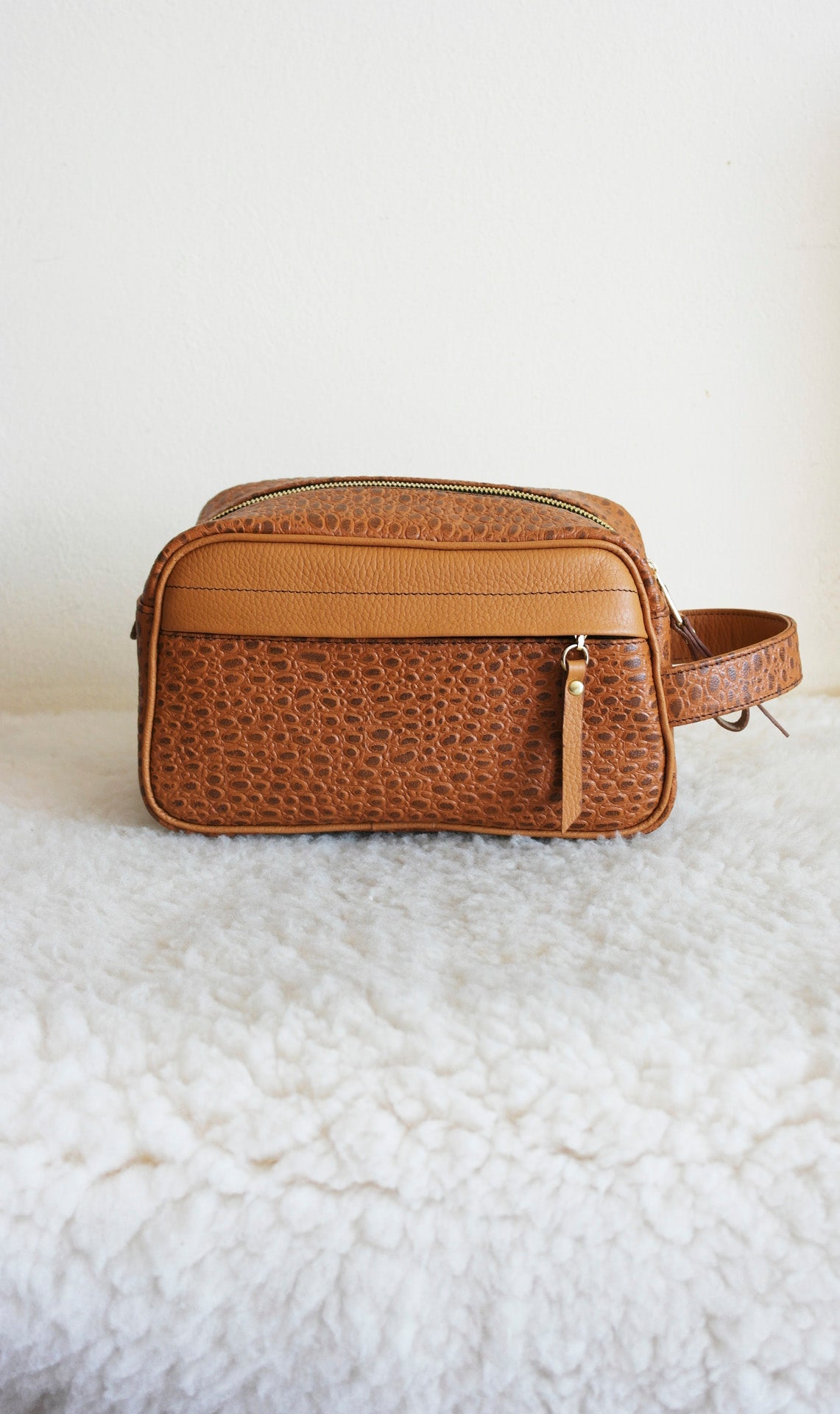 Este es un neceser unisex, confeccionado con piel de alta calidad y cuidadosamente diseñado para ser la solución perfecta para guardar tus artículos de cuidado personal mientras viajas. Su elegante diseño y resistente material de piel, lo hacen un accesorio duradero y sofisticado que no encontrarás en cualquier otro lugar.